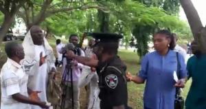 A police officer has threatened to shoot at supporters of the leader of the Indigenous People of Biafra, Mazi Nnamdi Kanu at the Federal High Court, Abuja. Kanu’s supporters were at the court to show solidarity with their embattled leader. The police officer was seen in video telling the people to leave the court premises … Continue reading Police threatens to shoot Nnamdi Kanu’s supporters at today’s trial, as DSS arrest two Americans for taking pictures of High Court
