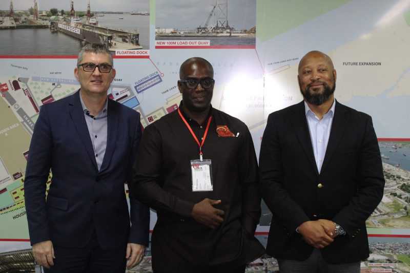 L-R: Ag. Managing Director, 9mobile, Stephane Beuvelet; Managing Director, Nigerdock Limited, Pade Durotoye and Director, Enterprise Segment, 9mobile, Plato Syrimis during a courtesy visit by senior management team of 9mobile to Nigerdock, Snake Island, Lagos.
