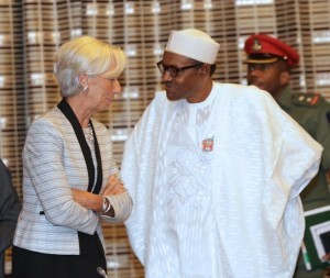 President Muhammadu Buhari confers with The Managing Director of the International Monetary Fund (IMF), Mrs Christine Lagarde. PHOTO;SUNDAY AGHAEZE.