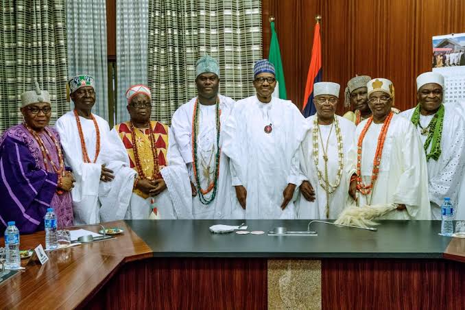 REMARKS BY HIS EXCELLENCY, MUHAMMADU BUHARI, PRESIDENT OF THE FEDERAL REPUBLIC OF NIGERIA, AT A MEETING WITH SOUTH WEST OBAS, WEDNESDAY 31ST JULY 2019