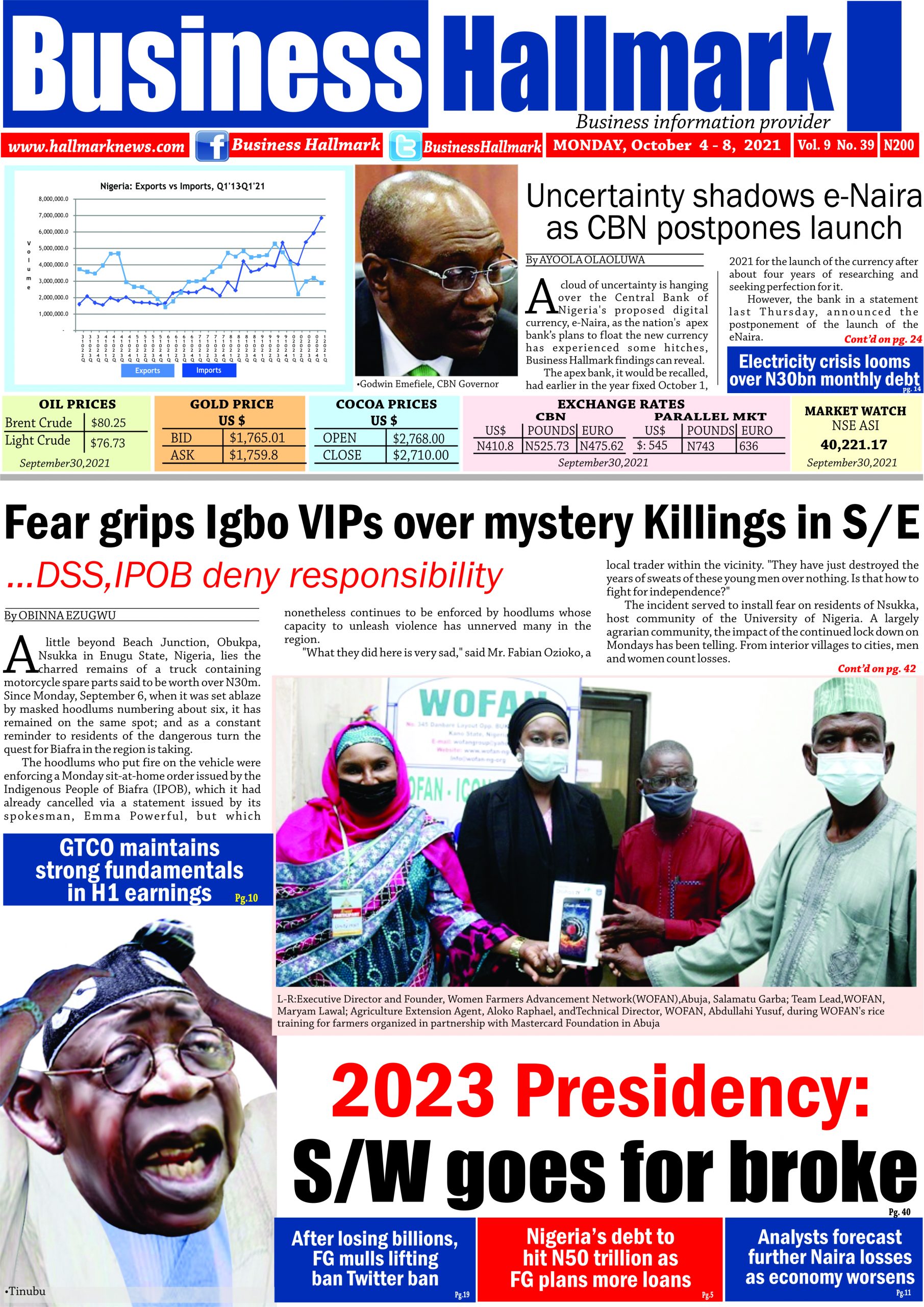 Here are some of the reports on today’s edition of Business Hallmark Newspaper: