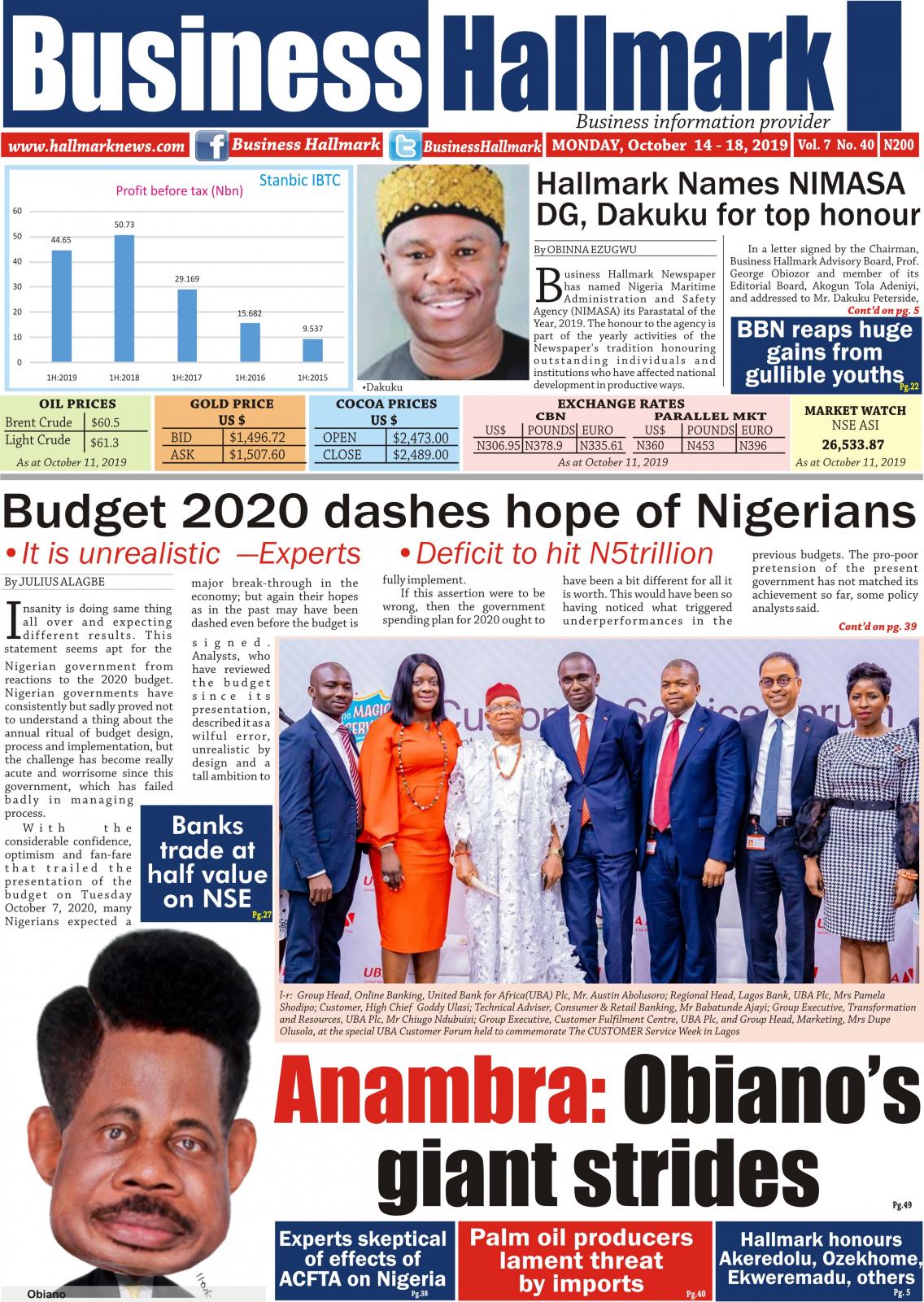 Business Hallmark Newspaper has named Anambra state governor, Chief Wille Obiano its Man of the year, 2019. The honour to Obiano is part of the yearly...