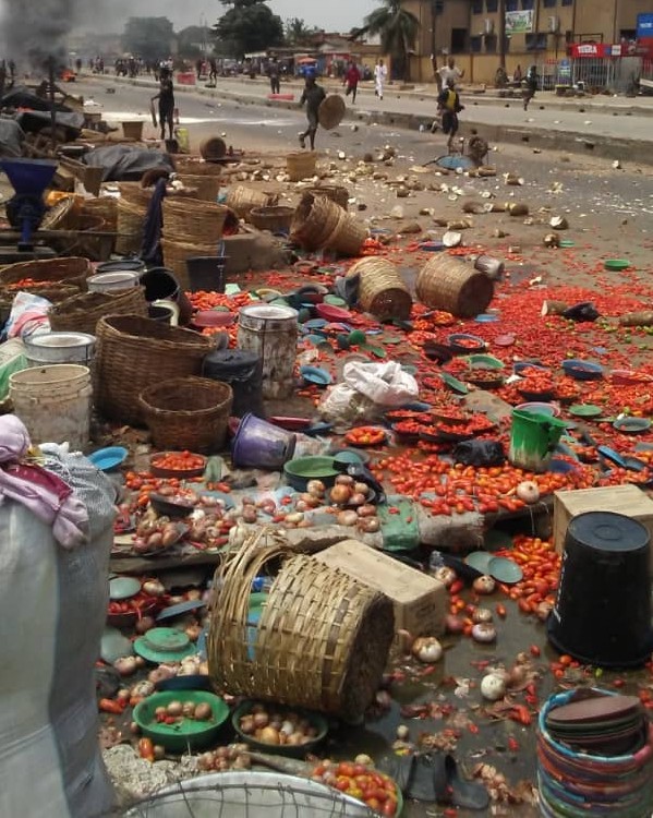 The situation reportedly escalated on Sunday morning when aggrieved traders started burning wares and make-shift tents.