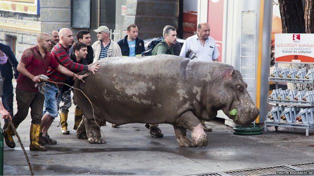 The animal was one of several to flee its enclosure at Tbilisi Zoo over the weekend, following severe flooding in the city.