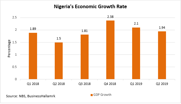 The 2019 economic growth projection of the Nigerian government is fast becoming a mirage as lack of policy direction takes its toll on the economy, causing it to grow sluggishly. Nigerian economy grew at a slower pace by 1.94 per cent year-on-year in the first six months of 2019, lower than 2.1 per cent growth it achieved in March.