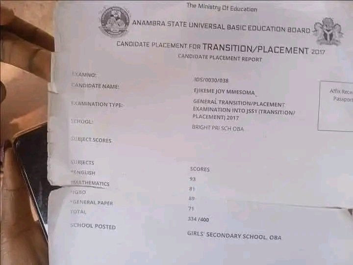 Ejikeme’s common entrance result