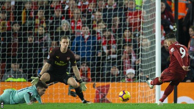 Liverpool, admittedly helped by Arsenal and by a huge roar that swept around Anfield, were ahead in five minutes thanks to two Firmino goals and never looked back.