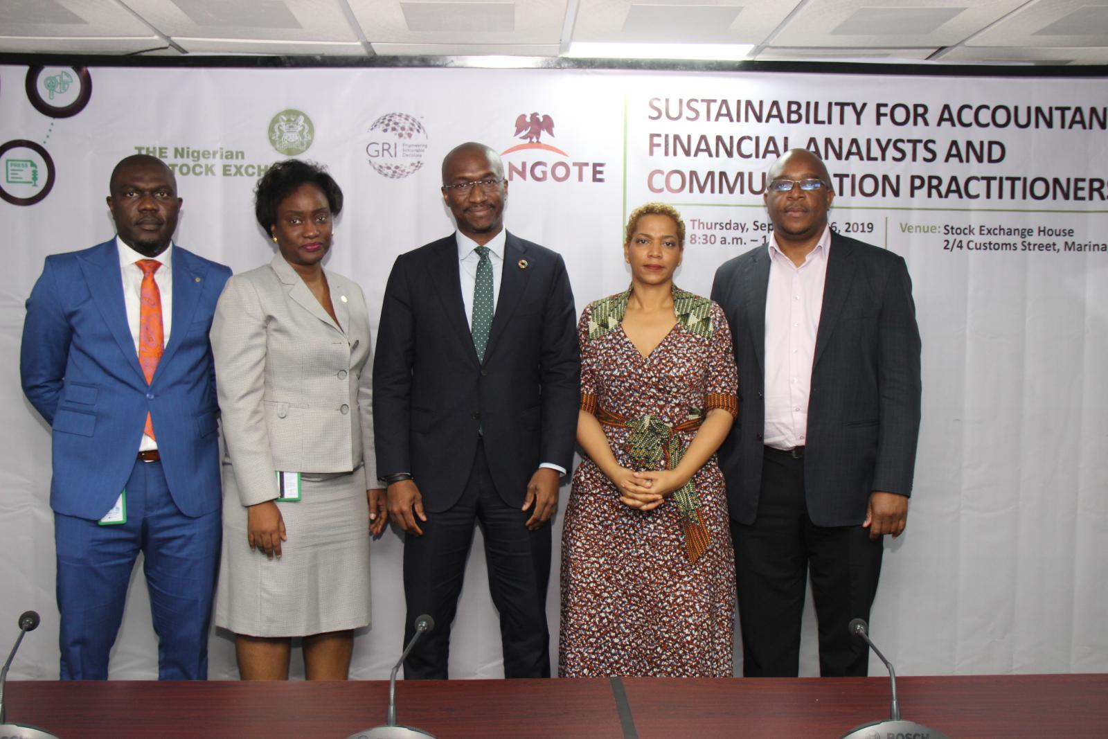 The Nigerian Stock Exchange (NSE) in partnership with Dangote Cement Plc and Global Reporting Initiative (GRI) held a capacity development workshop on sustainability value proposition and reporting for accountants, financial analysts and communication practitioners on Thursday at the Stock Exchange House in Lagos.