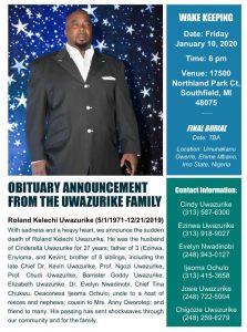 OBITUARY: Uwazurike goes home January 25