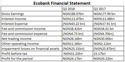 Ecobank puts up an impressive financial performance, helped by significant growth in other operating income, fee and commission income and cut in its impairment charges on loan losses.