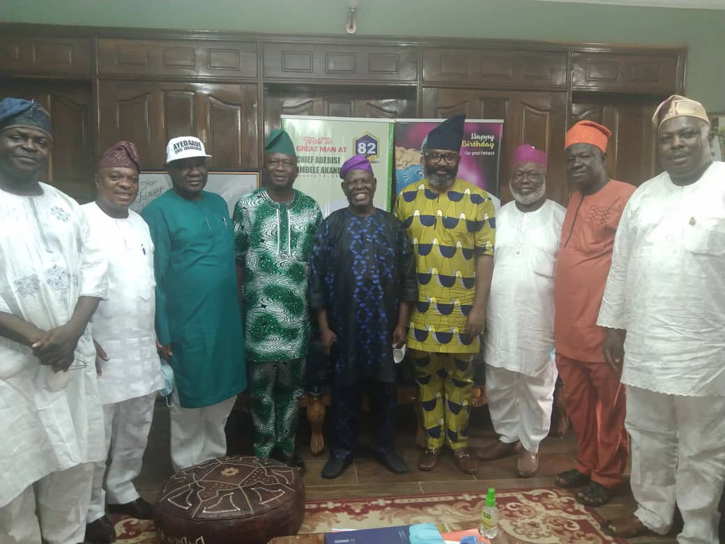 In the team that visited Chief Adebisi Akande are RH Adewale Afolabi, Hon. Barr Adeyinka Ajayi, Hon. Abiodun Awolola, Hon Akintunde Adegboye, Hon. Goke Awotunde, Elder Tunde Adedeji, Alh. Semiu Ayofe and Oluomo Sunday Akere.