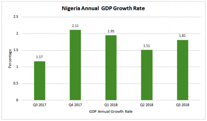 Nigeria’s economy grew 1.81 per cent in the third quarter of 2018, buoyed by the non-oil sector, which expanded at a faster pace. Crude oil price which slumped to one year low of $55.69 per barrel on November 13 due to glut in the market, occasioned by increased U.S. supply, has also not helped matters. It has, however,risen to $60.28 on Friday.