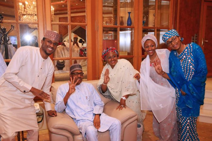 President Buhari and members of his immediate family making a gesture of four more years.