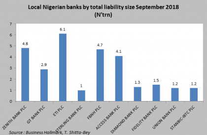 To be sure, the total assets of ten deposit money banks selected in a Business Hallmark survey for the 9 months to September 2018 has bumped forward a notch or by 3 per cent in the first three quarters of the year while net profit margins scurried to an average annual year-on-year growth of 10 per cent. This may not be riveting but it still remains impressive compared to the overall growth of the economy. The total liabilities of banks surveyed by Business Hallmark also went up as deposit growth became a vital tool for competitive advantage; liabilities jerked forward mildly by 9 per cent as banks continued to aggressively chase down retail customers. The challenge over the period has been that banks have found it difficult to convert short-term by way of bank deposits into near and medium-term lending assets. ‘’ the asset conversion cycle has become a stick in the mud for banks, as we increasingly see sliding short-term treasury yields at between 12 and 13 per cent (down from 18 per cent a year earlier) and slower aggregate bank lending’’, says Chris Okenwa, managing director of FSS Securities and one time market trader for investment bank, Capital Bancorp Limited. According to Okenwa, ’’how efficiently local banks start to convert customer deposits to loans and advances will separate the men from the boys and perhaps, ominously, the living from the dead’’.