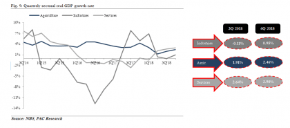 In the same vein, the industry sector recorded real growth rate of 0.95% in the review quarter, higher than the contraction of 0.11% in the preceding quarter but lower than the growth rate of 4.87% in the same quarter of the previous year. Also, the sector posted real growth rate of 1.94% for the year, lower than the 2.15% in 2017, the performance of the sector was driven by the manufacturing sector and construction sector which recorded real growth rate of 2.35% and 2.05% respectively.