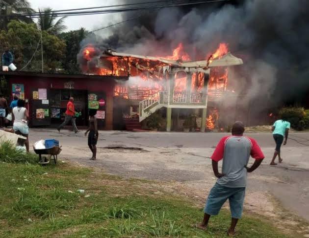 According to a witness, the hoodlums, on arrival, fired shots in the air before setting on fire the RCM Primary School Aya, housing the materials.