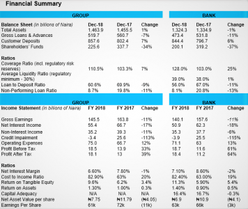 “Through an aggressive focus on recoveries and recognising fully provisioned loans on our books, we successfully reduced the Bank’s NPL ratio, which is now down to 8.1% in 2018 from 20.8% at the end of 2017, in line with guidance provided at the start of the year. In 2019, we will continue to maintain focus on recoveries while prudently rebuilding our loan book and maintaining a conservative risk profile,” said Emeka Emuwa, Managing Director.