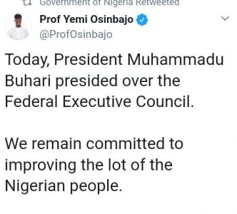 “Today, President Muhammadu Buhari presided over the Federal Executive Council,” Osinbajo said.